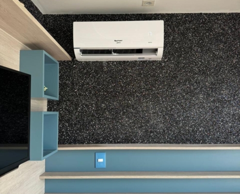 Instalação de ar-condicionado em ambientes residenciais com design moderno, garantindo conforto e sofisticação.